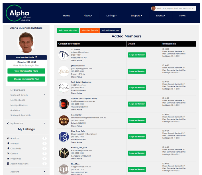 Stage Two enables the Strategist to login to the businesses dashboard and create more specific listings promoting their their haves and needs dependent on how the business wishes the Strategist to handle their Alpha eMarket subscription.