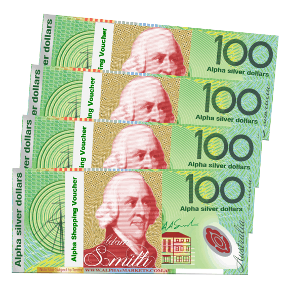 The Alpha Shopping Vouchers have a face value of As$100.00 Alpha silver dollars and may be deposited into the receivers Alpha ePay Personal account once the account is opened.