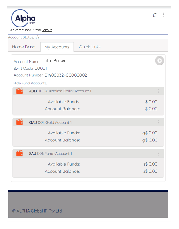 Alpha ePay Personal Accounts consist of three types of accounts.