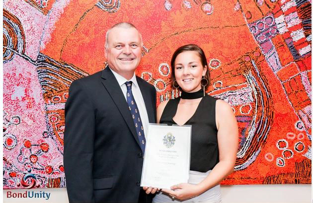 Rhiannon receiving the Vice Chancellor's award at Bond University.